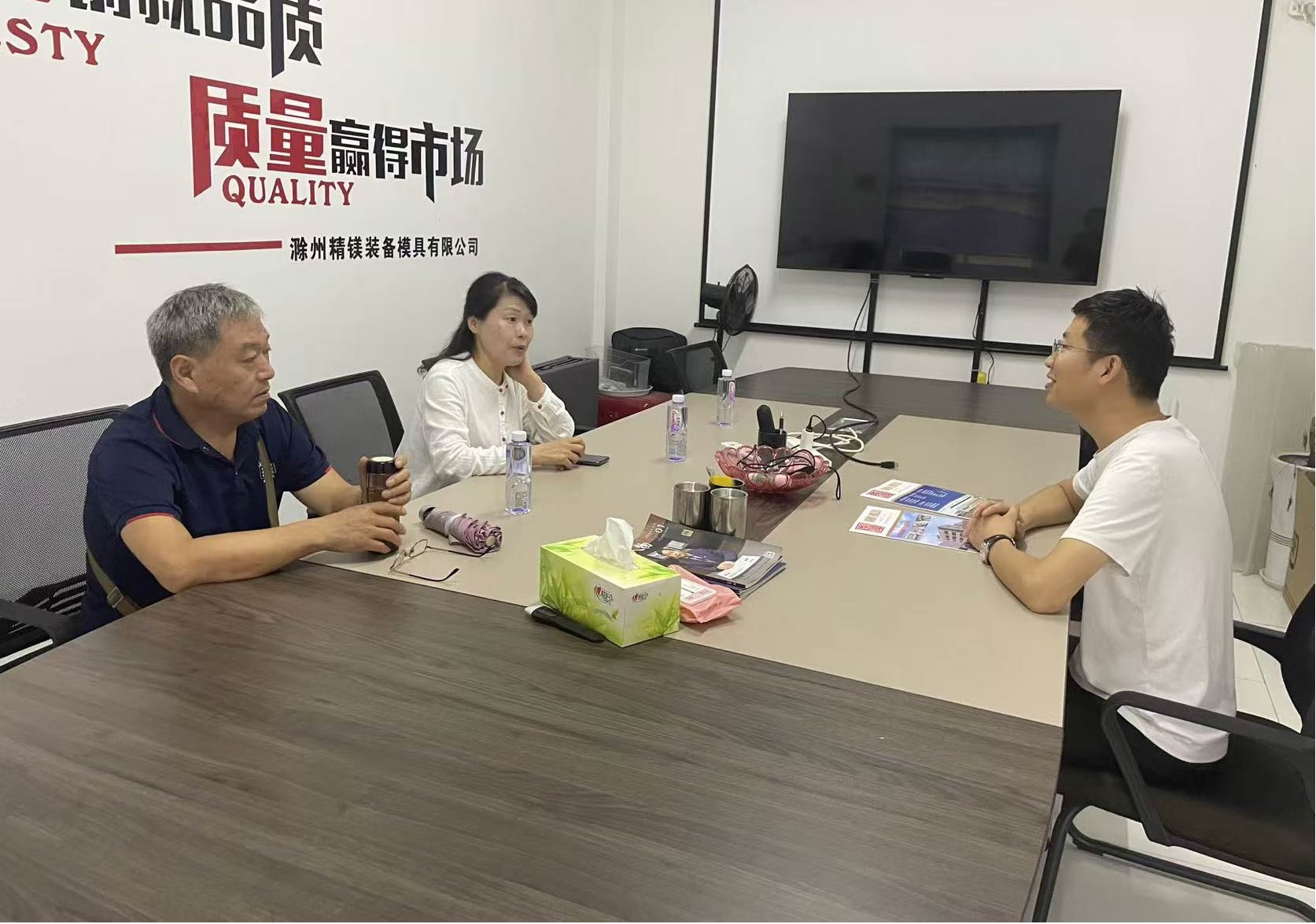 9月30日,为深入了解新入会会员企业发展状况,加强协会与会员单位的沟通联系,充分发挥协会桥梁纽带作用,安徽省模具行业协会(以下简称 “省模协”)秘书长刘平、党支部书记金荣带领协会相关工作人员,专程前往新入会会员企业 —— 滁州精镁装备模具制造有限公司开展走访调研活动,受到滁州精镁模具付总热情接待。