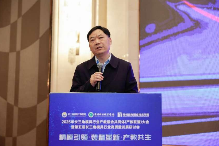12月4日至5日,以“精模引领・装备革新・产教共生”为主题,2025年长三角模具行业产教融合共同体(产教联盟)大会暨第五届长三角模具行业高质量发展研讨会在江苏常州举行。会议由长三角模具行业产教融合共同体主办,常州机电职业技术学院、台州科技职业学院、江苏省模具行业协会联合承办,并得到模士登(上海)智能科技有限公司、广东希普思科技有限公司和Tebis中国的大力支持。来自沪苏浙皖三省一市的近200名行业协会代表、高校专家、企业负责人齐聚龙城,共谋模具产业智能化升级与高素质技术技能人才培养新路径。安徽省模具行业协会秘书长刘平受邀参加。