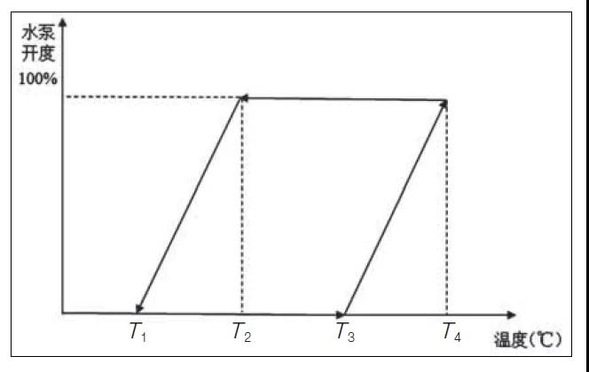 电子水泵根据电机系统各发热零部件的冷却需求对水泵转速进行调节。电子水泵通常是PWM控制,其控制曲线如图2所示。